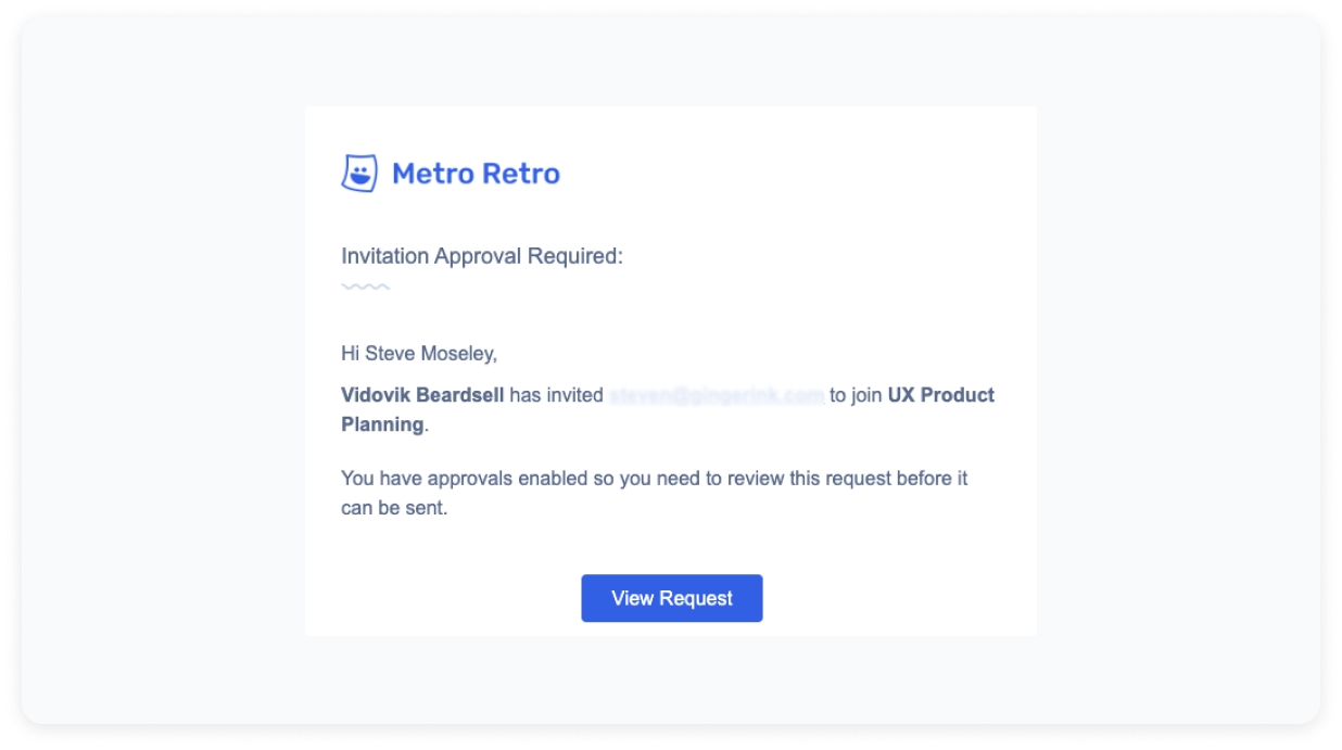 When a member tries to send an invite to someone that is not already in the Account, Admins will receive an email notifying them that a new invite has been requested: